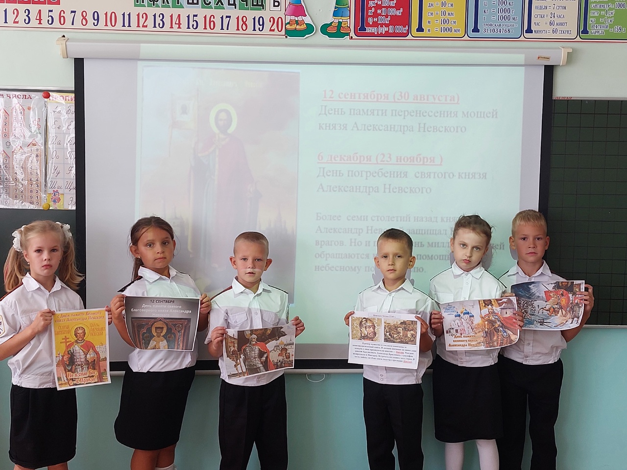 Сегодня прошёл классный час в 1-К классе МБОУ "Зуйская СШ 1 им. А. А. Вильямсона" Белогорского района Республики Крым на тему - День памяти святого благоверного князя Александра Невского.